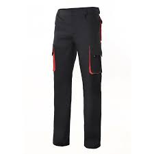 .PANTALON BICOLOR VELILLA 103004 Cierre central con cremallera y botón Color de contraste en fuelles, tiradores y presillas Refuerzo de tejido trasero Cinturilla elástica Doble