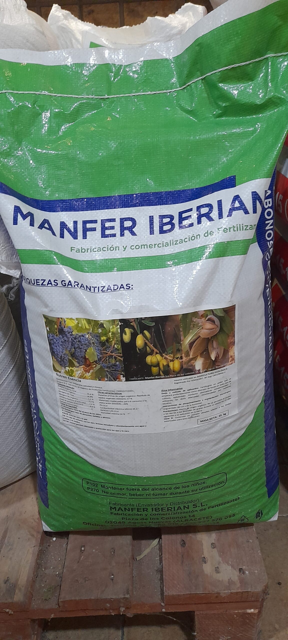 NUTREN ESENCIA MANFER IBERIAN Insumo utilizable en AGRICULTURA ECOLÓGICA.dosis y método de aplicacion:Fertilizante en pellet que se empleará preferiblemente como abonado de fondo en todo