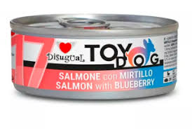 Disugual Lata De Salmón Y Arándanos Para Perros Toy 85g Características destacadas Monoproteico: una sola fuente de proteína (salmón) — ideal para