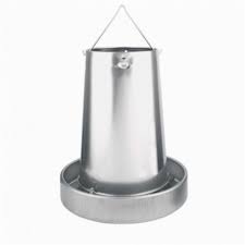 Tolva Metálica Galvanizada Tolva para gallinas elaborada totalmente de chapa galvanizada con asa para colgar y facilitar el transporte del alimento. Dispone de tres diferentes alturas para regular