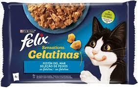 Descripción DELICIOSOS TROCITOS CON SALMÓN Y TRUCHA PARA EL GATO ¿Qué Es Purina Felix Sensation Gelatinas Selección De Pescados? Purina Felix Sensation Gelatinas Selección de